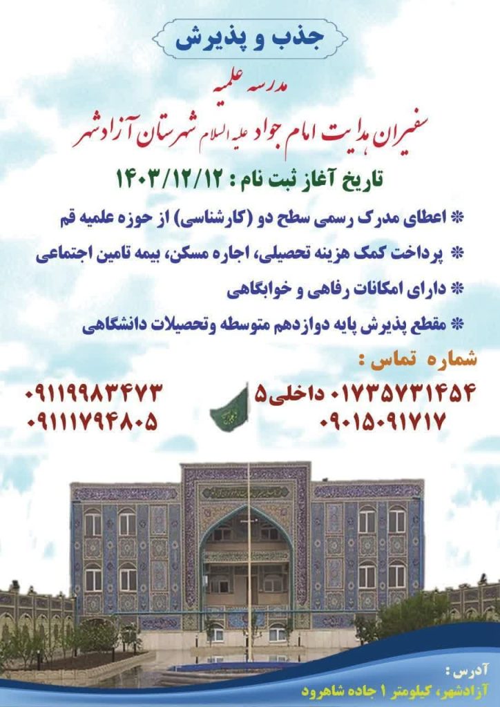جذب و پذیرش حوزه های علمیه سلام بر همراهان عزیز ❓از حوزه های علمیه چه می دانید؟ ❓آیا از مدارس علمیه سفیران هدایت اطلاعات دارید؟ ❓شرائط و ضوابط پذیرش در حوزه های علمیه چیست؟ ❓چگونه می توانم در حوزه پذیرش شوم؟ ❓در حوزه تا چه مقطعی امکان ادامه تحصیل وجود دارد؟ ❓از چه زمانی می […]