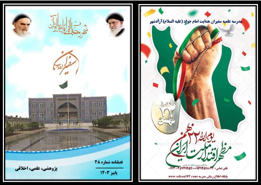 نشریه شماره ۴۸سفیران انقلاب منتشرگردید. پاییز۱۴۰۳ این شماره شامل موضوعاتی از قبیل : 🔹همراه باشهید 🔹رویدادهای تاریخی 🔹معرفی کتاب(راه روشن مدیران) 🔹توصیه های اخلاقی استاد 🔹حدیث ناب 🔹مهدویت 🔹راه های صحیح مطالعه برای امتحانات 🔹تغذیه صحیح برای ماه مبارک رمضان 🔹همراه با تبلیغ 🔹دفاع از امام زمان 🔹چکیده تحقیق پایانی طلاب 🔹اخبار مدرسه 🔹و… معاونت […]